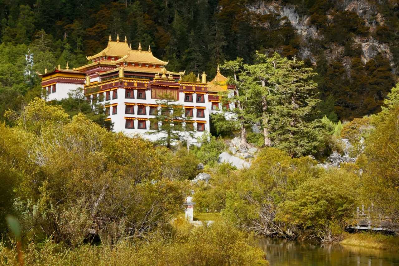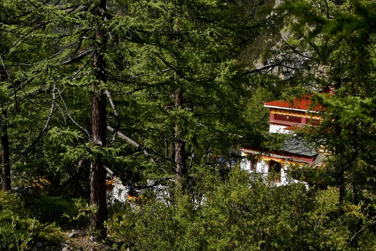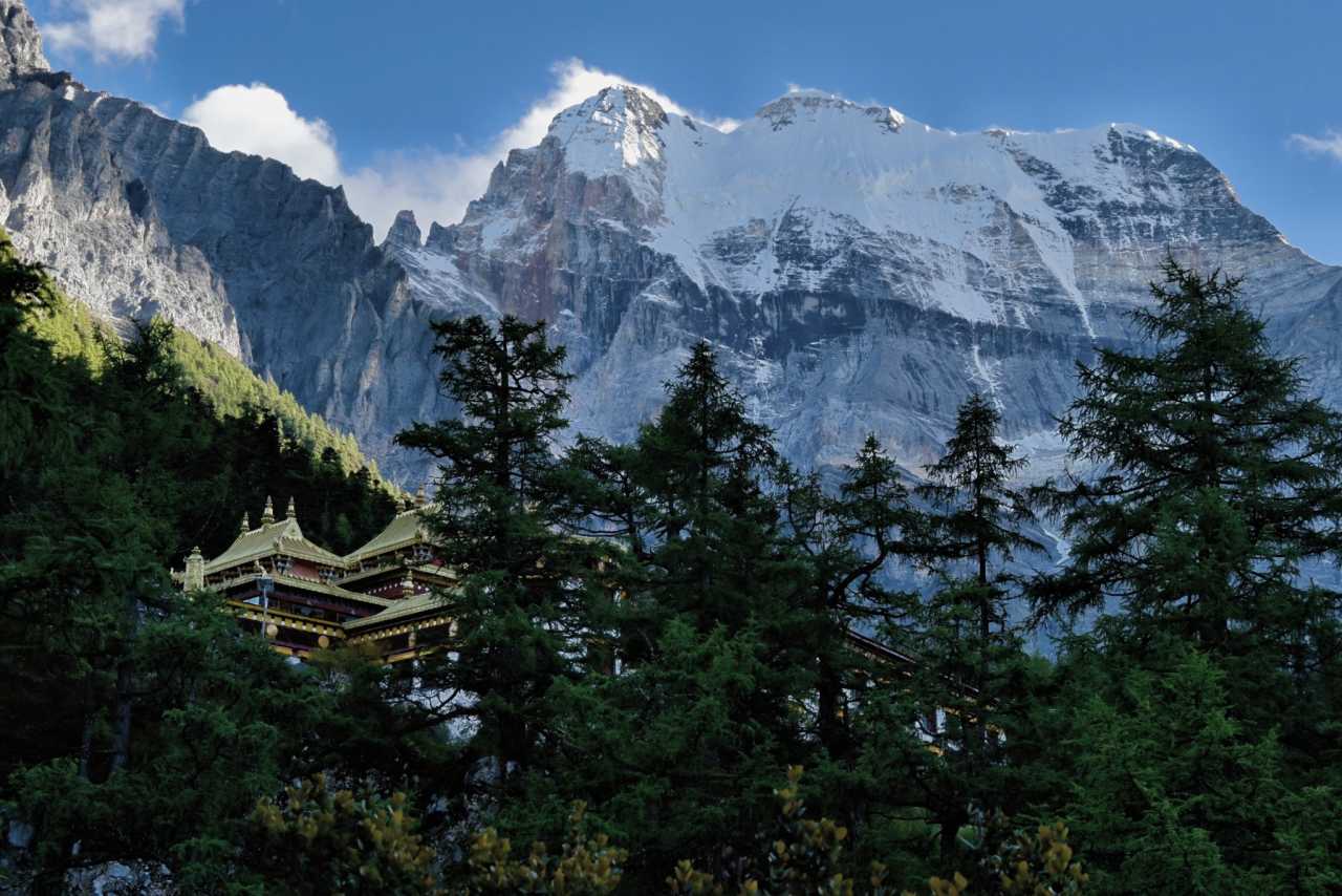 Daocheng Yading – Chonggu MeadowZooming in with telephoto, Chonggu Monastery looks full of divinity.