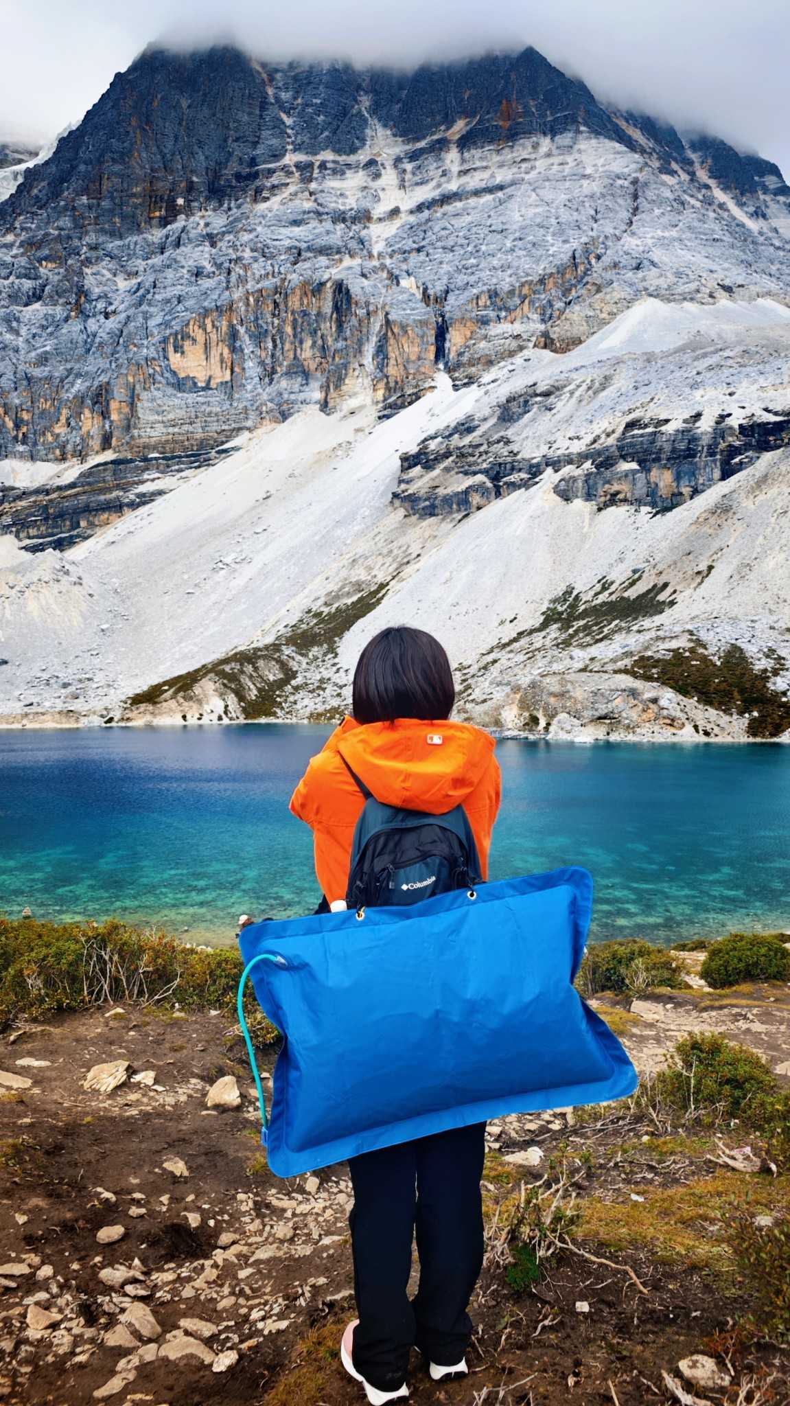 Five-Color LakeStaff kept urging with loudspeakers—time was tight. The route is a condensed “hell three hundred.” Continuous fatigue, hypoxia, and load made every step heavy.