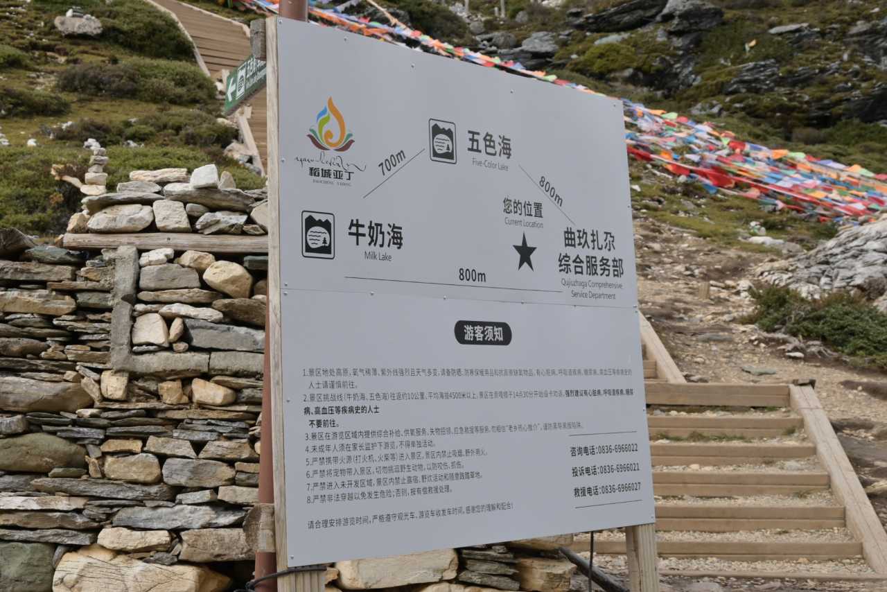 Daocheng Yading Scenic AreaYou’ll pass: Chonggu Meadow – 0.7 km – Sacred Water Gate – 0.5 km – Sacred Water Lake – 6.3 km – Distant View of Sixteen Arhats – Luorong Pasture. The trail is a single path, hard to get lost.
