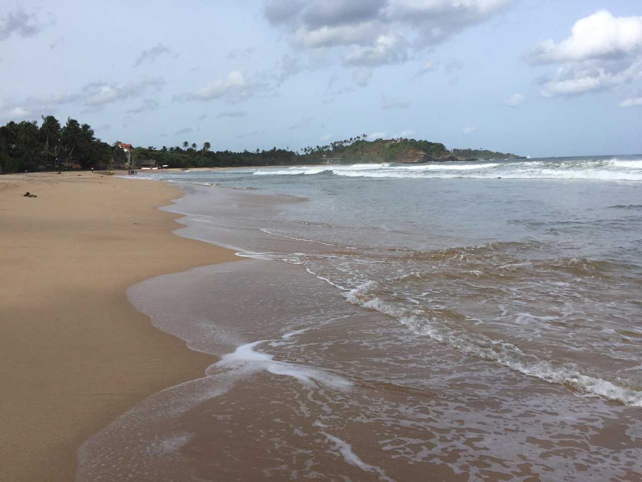 Talalla is great: long beaches, fine sand, few people, with two lifeguard teams patrolling. The Indian Ocean waves are fierce—I was knocked over by a wave just inches high. Be careful swimming; watch for rip currents. South‑coast weather in August is truly poor, and without new buddies to swim with, I left after one night.