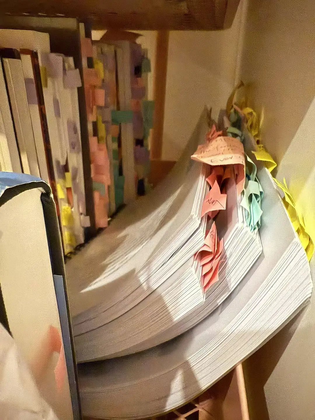 At first, I tried to distinguish different types of information by using different colors. But soon I realized that this would impose an extra burden on me. Every time I needed to attach a memo card, my mind had to think about which color corresponded to which information. The process of choosing the color of the memo card was enough to disrupt my train of thought. Moreover, it was easy to forget to bring enough memo cards of different colors when going out for study. So I quickly simplified the process by using single-color memo cards instead of different-colored ones, but I would mark simple, convenient and fixed symbols on them.