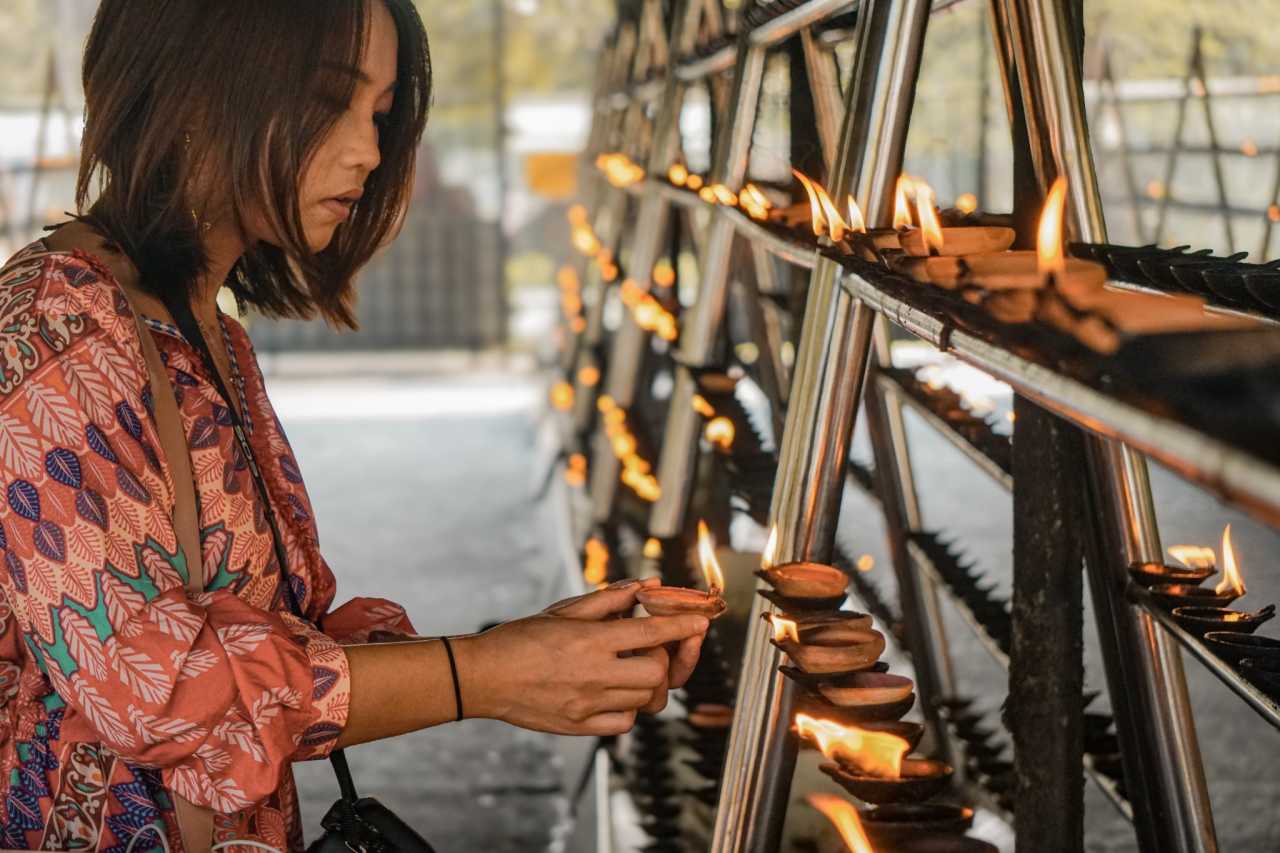 The Christian cross, the Islamic crescent, and Buddhist golden domes