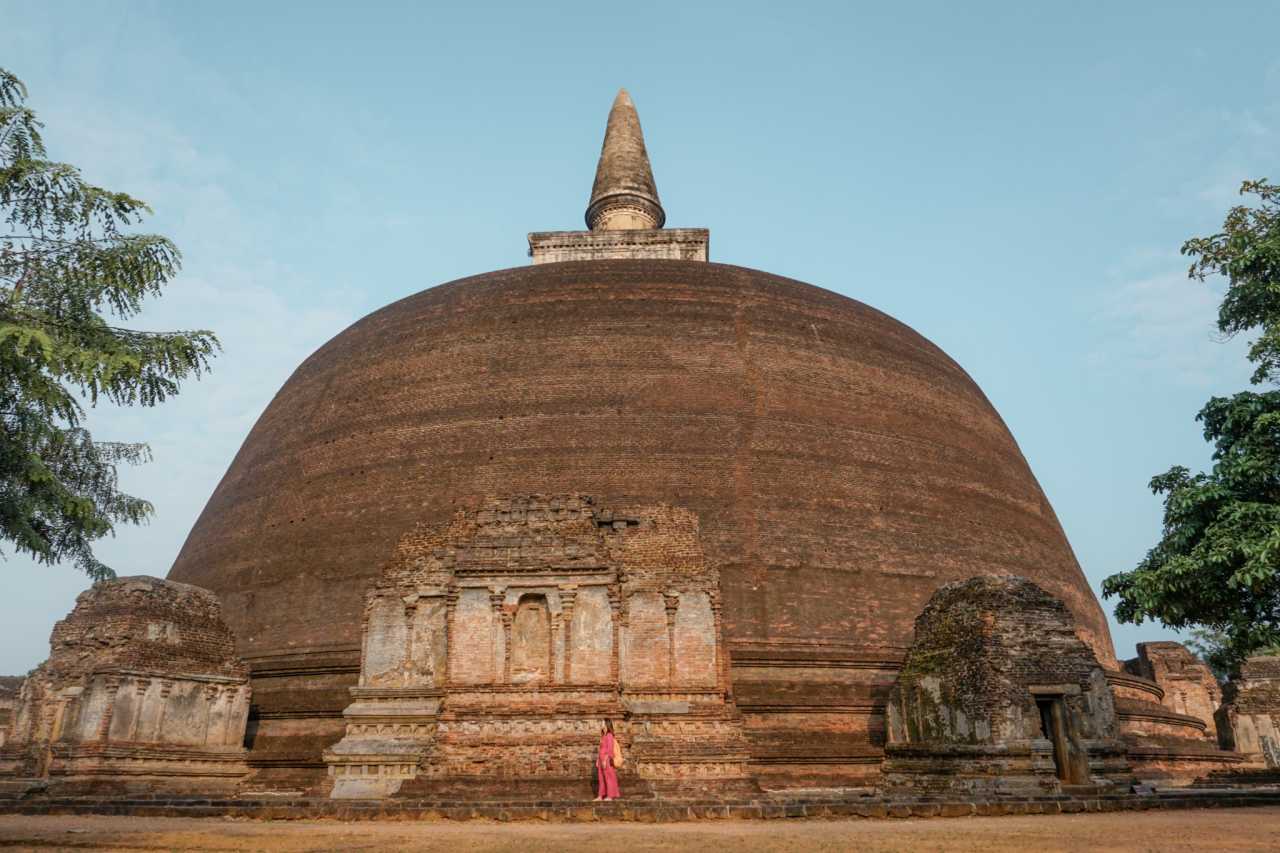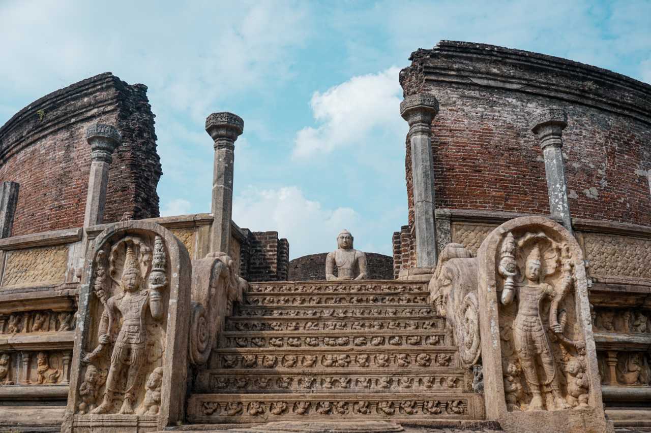 Polonnaruwa’s bricks glow ocher in the slanting sun,